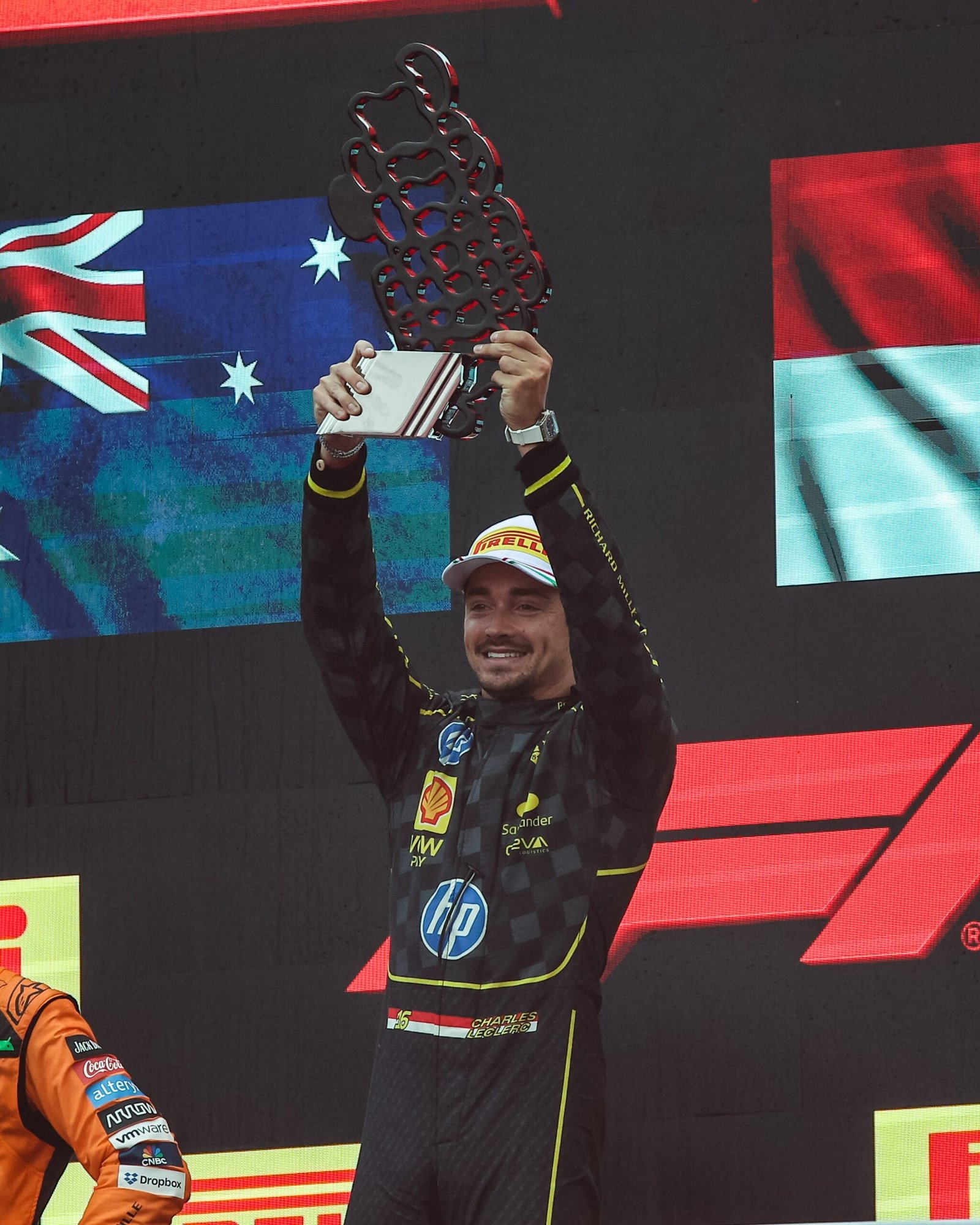 Carlos Sainz no pudo aguantar con sus ruedas, lo que hubiera significado algo más grande aún, doblete. Pero a Leclerc si le aguantaron y el himno italiano sonó en Monza. Exultante en sus declaraciones como no podía ser de otra manera Charles Leclerc: