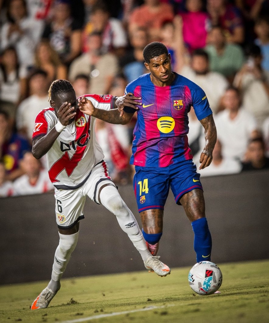Nada fácil para el Barça la primera parte, pues el Rayo estaba muy fuerte y, de hecho, gozó de un número muy parejo de ocasiones a las del Barcelona, algunas muy claras y con Joan García teniéndose que emplear a fondo. Ratiu es quien más clara la tuvo a pase de Álvaro. Precisamente Ratiu, junto con Isi, fueron los que más dolores de cabeza le dieron a la defensa culé que en la primera parte ha pasado dificultades. Novedades hoy en el centro de la zaga con Eric García y Chistiansen, titulares, haciendo rotación a los habituales Araujo y Cubarsí.